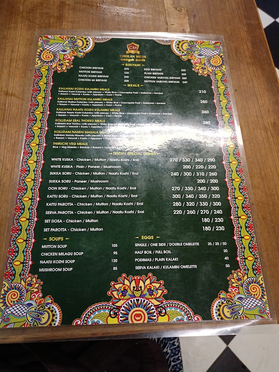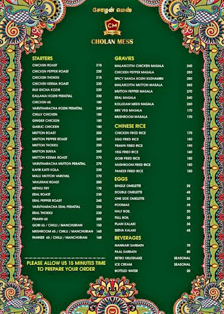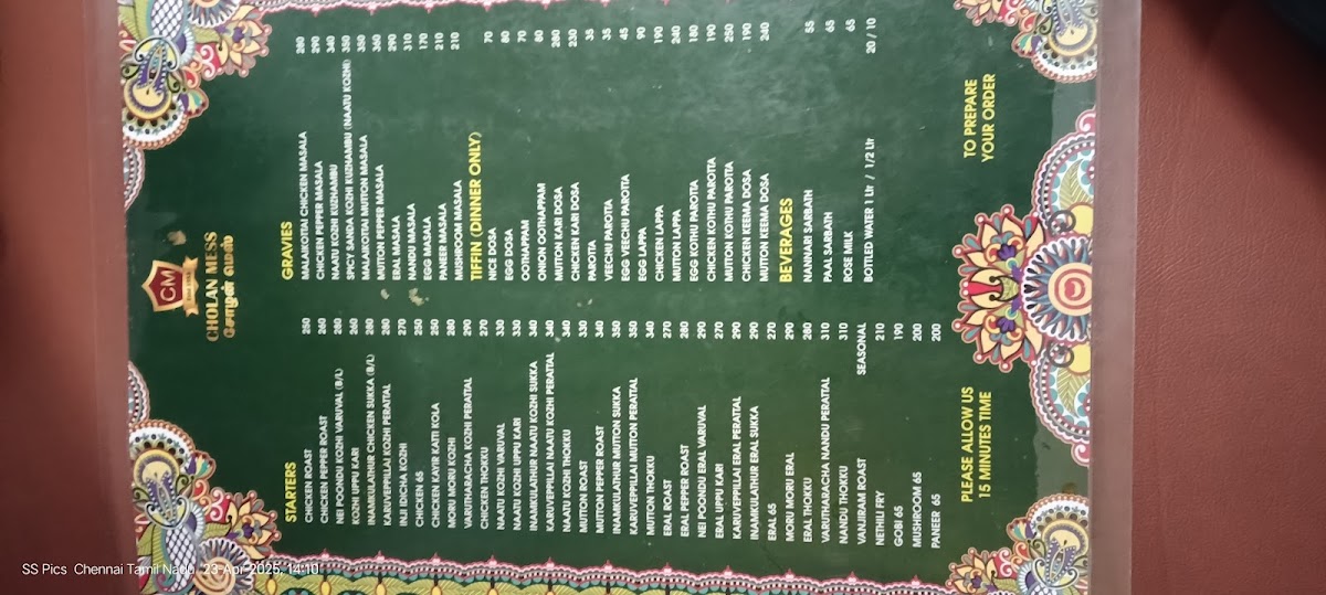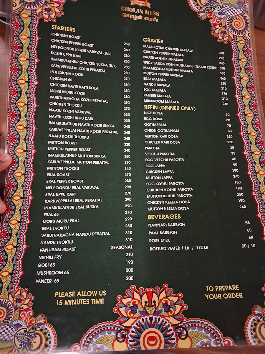 Despite a limited vegetarian selection, Cholan Mess has carved a niche for itself, promising a memorable dining experience that celebrates the region's culinary fabric.