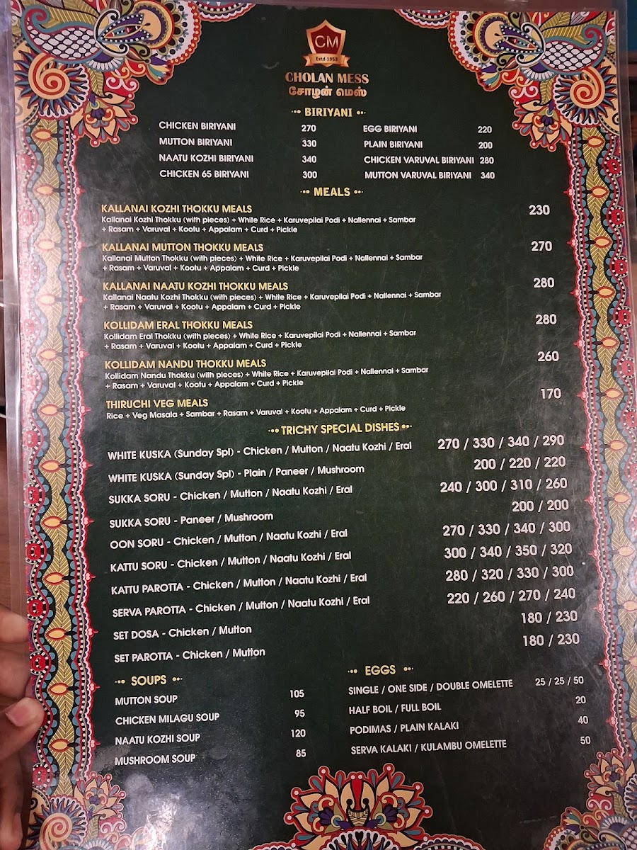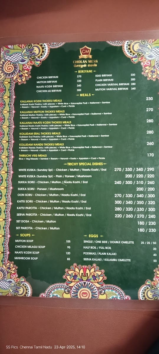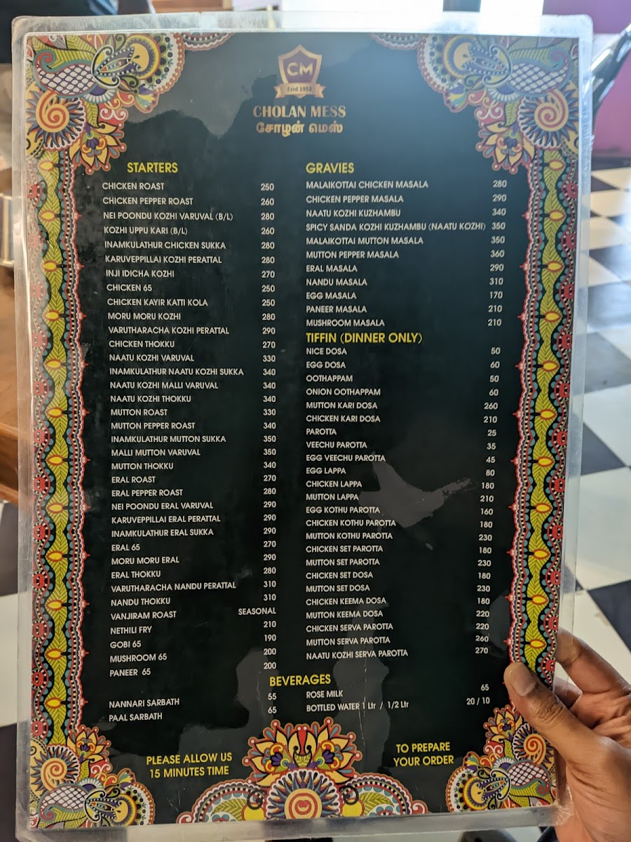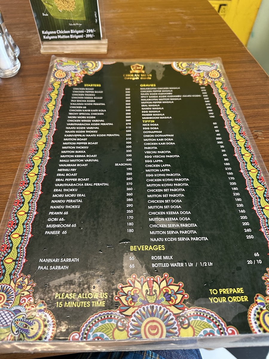 Despite a limited vegetarian selection, Cholan Mess has carved a niche for itself, promising a memorable dining experience that celebrates the region's culinary fabric.