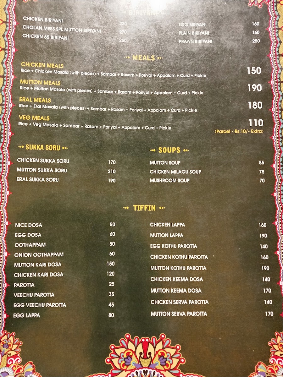 Located in the heart of Kodambakkam, Cholan Mess stands out as a destination for authentic Trichy cuisine. This casual dining spot is not just about satisfying your hunger, but also about immersing yourself in a delightful culinary experience.